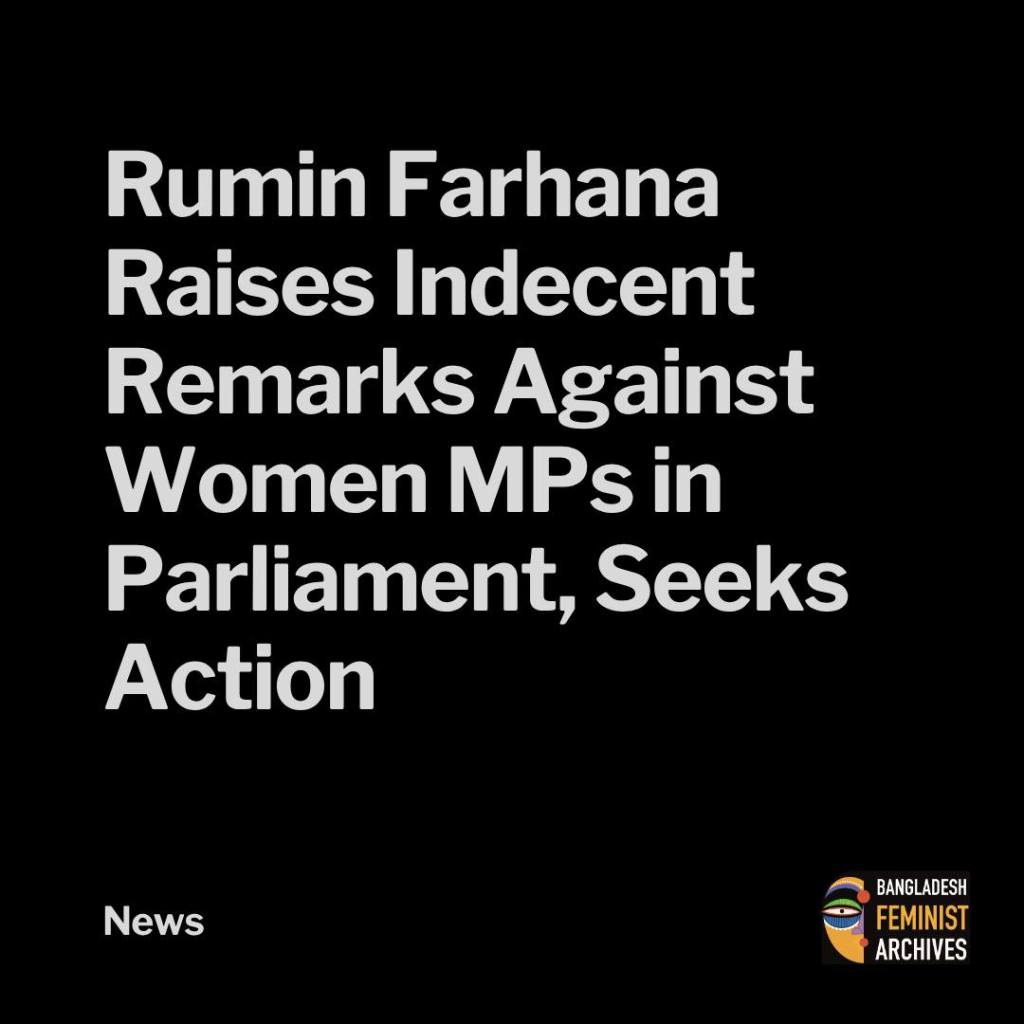 Independent Member of Parliament Barrister Rumin Farhana raised concerns in the National Parliament over indecent remarks made by a male MP during a religious gathering, describing the language used against two women MPs as unacceptable and calling for accountability. The remarks were discussed during a parliamentary session on Thursday.
