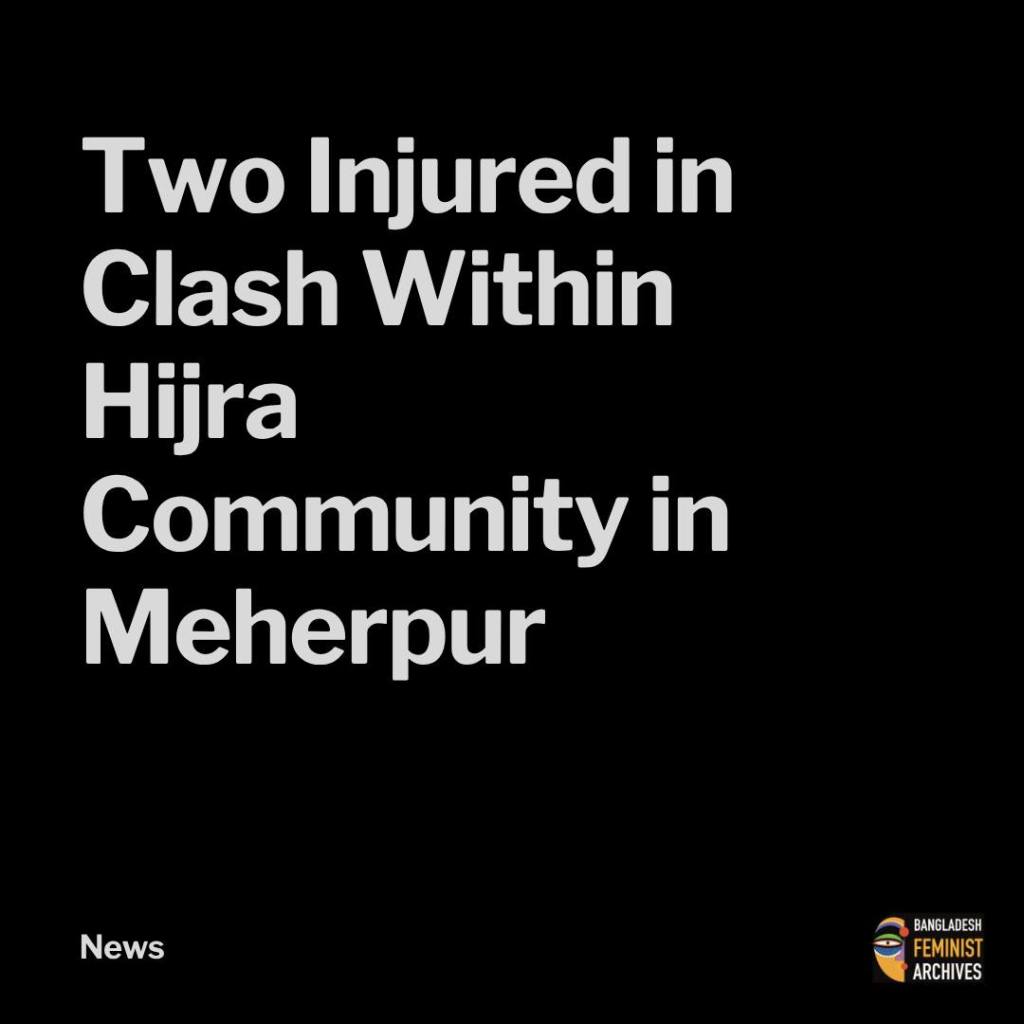 Two members of the Hijra community were injured in a clash at Gangni Bazar in Meherpur, reportedly linked to internal disputes over community norms and leadership. The incident occurred around 2:00 PM on April 9 near the local fish market area.