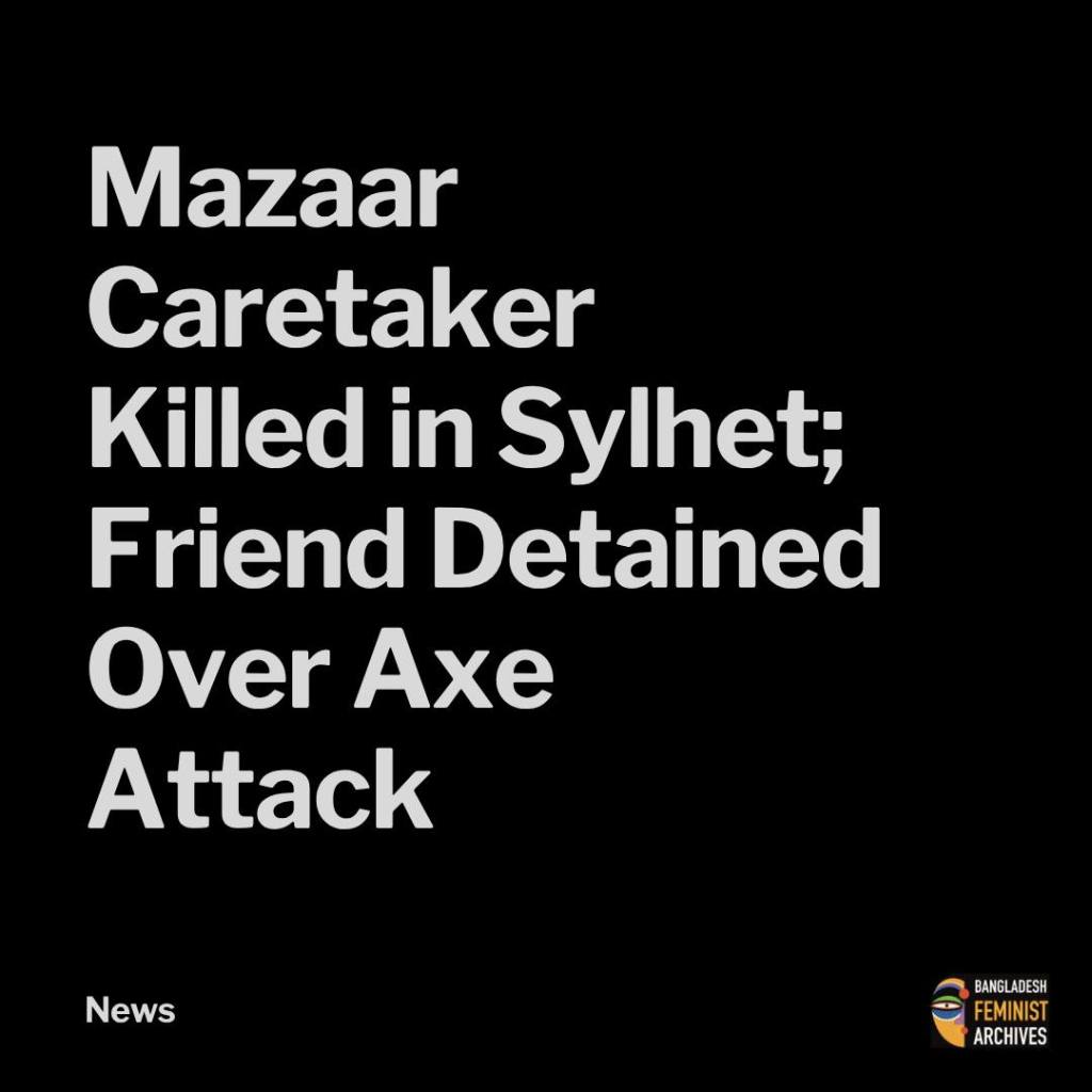 A mazaar caretaker was killed in Sylhet’s Bishwanath Upazila after being attacked with an axe, and a friend has been detained in connection with the incident. The killing took place on April 15 in the Ramapasha Union area.