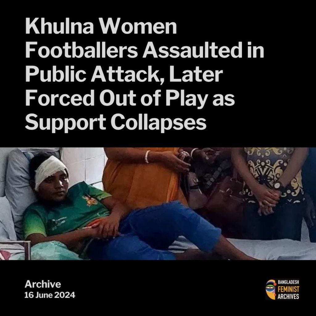 On July 29, 2023, women footballers from Khulna’s Tentultola Super Queen Football Academy were assaulted during training, with attackers confronting them over girls playing football. At least four players were injured, including Mangoli Bagchi, who was hospitalized. The assault took place in a public setting, where the players were surrounded and targeted in a coordinated act of gender-based violence.