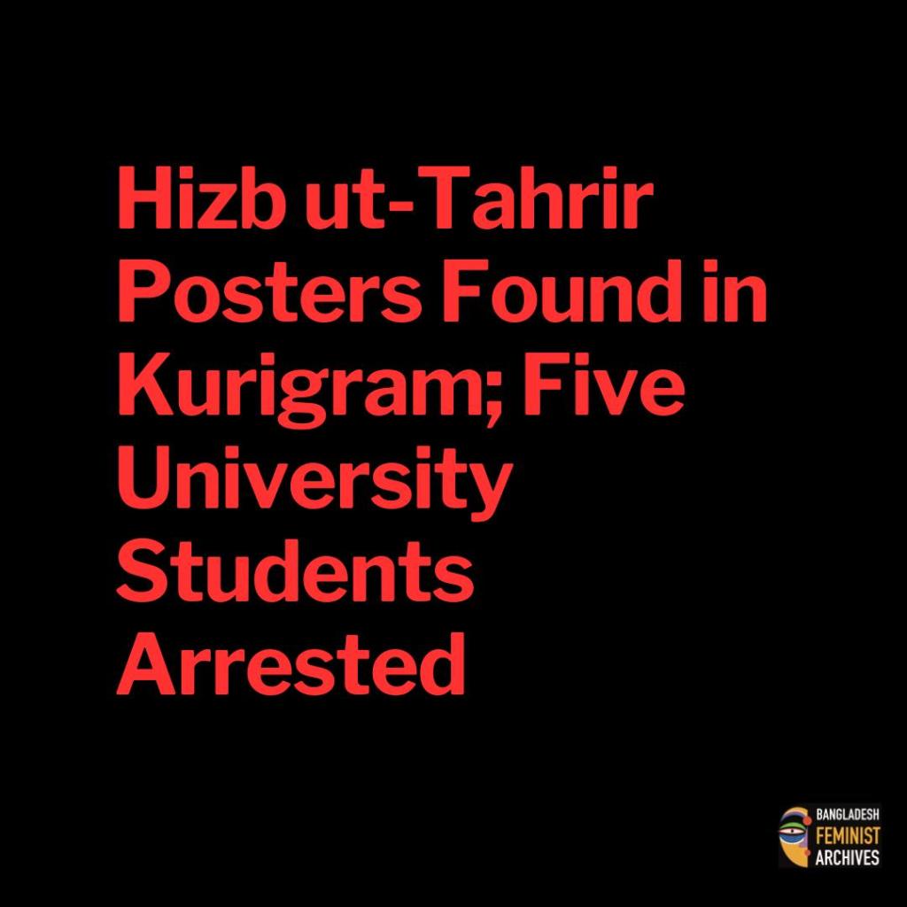 Hizbut-tahir Posters Found in Kurigram; Five University Students Arrested