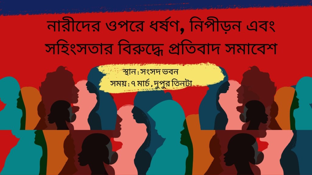 নারীদের ওপরে ধর্ষণ নিপীড়ন এবং সহিংসতার বিরুদ্ধে প্রতিবাদ সমাবেশ